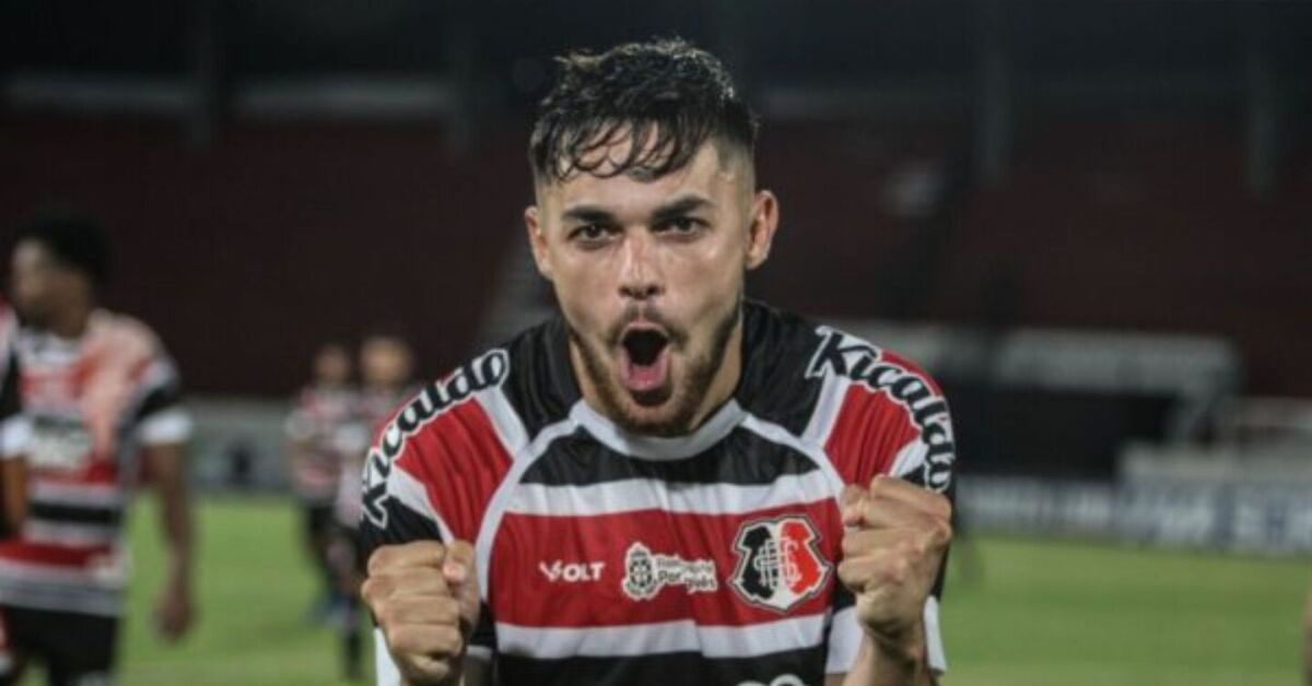 João Pedro comemorando vitória do Santa Cruz no Arruda pela Série C. Foto: Evelyn Victória / Santa Cruz