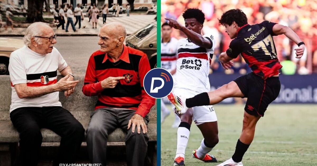 Santa Cruz provoca Sport em post nas redes sociais. Foto: Divulgação / Santa Cruz e Paulo Paiva / Sport Recife
