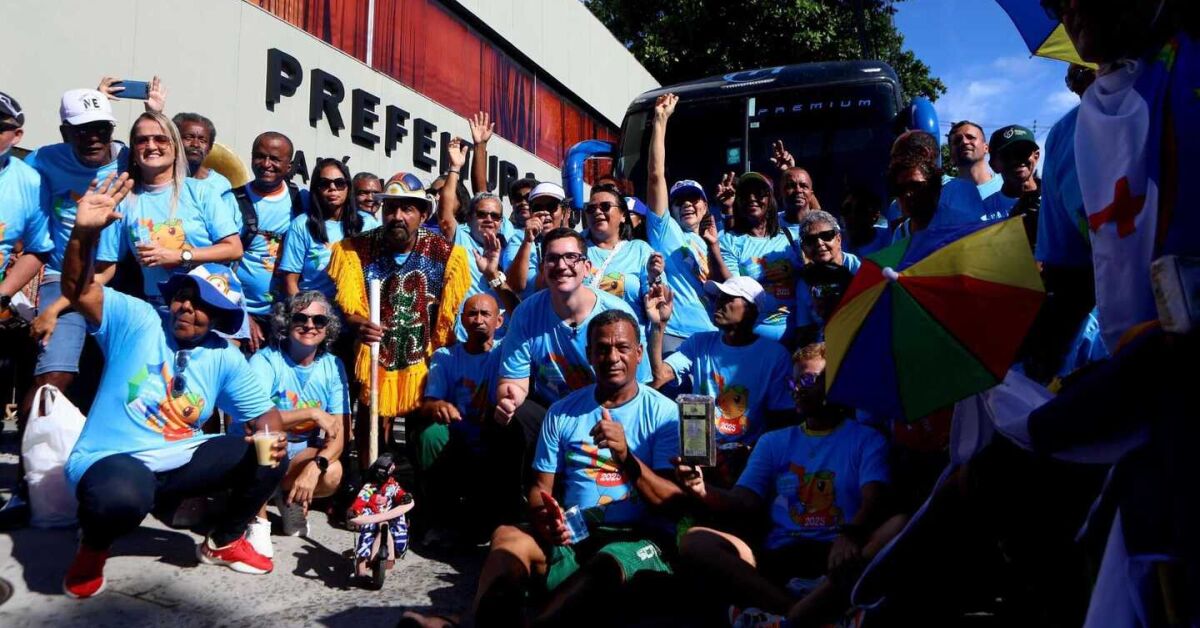 O embarque aconteceu em frente ao edifício-sede da Prefeitura do Recife, com concentração que começou às 7h. Os viajantes chegam em São Paulo (SP) no domingo (28) e a corrida ocorre na quarta-feira (31), no último dia do ano.