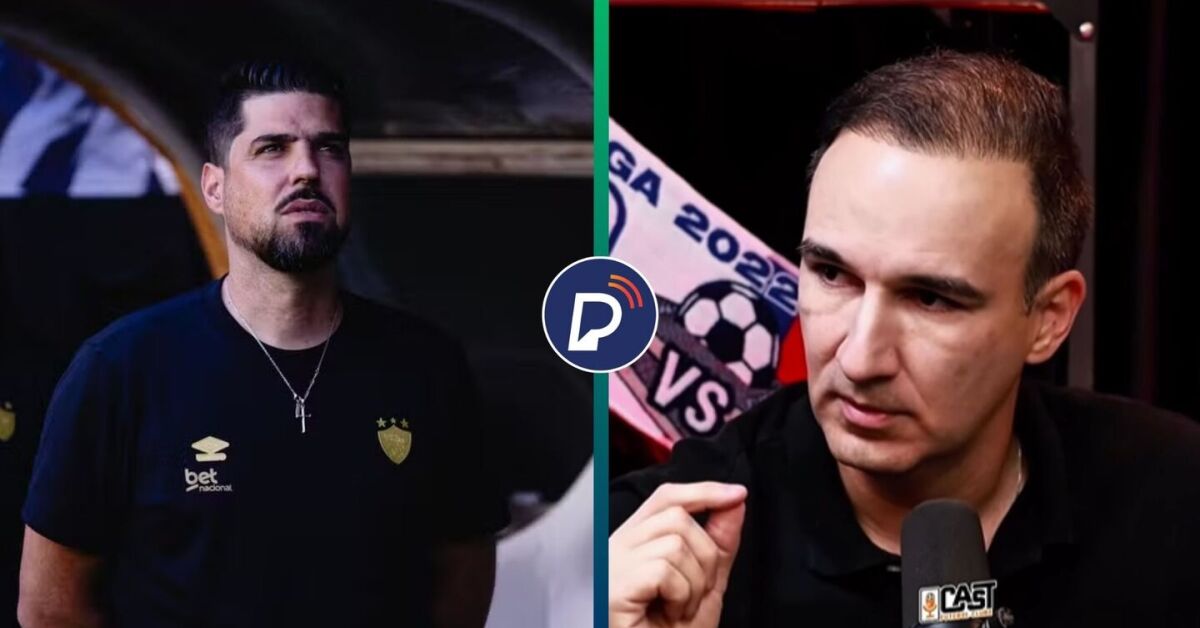 António Oliveira deixou o Sport após quatro jogos. Matheus Souto Maior revela que dívida é superior aos R$ 3 milhões. Fotos: Paulo Paiva / Sport Recife e Reprodução / Cast FC
