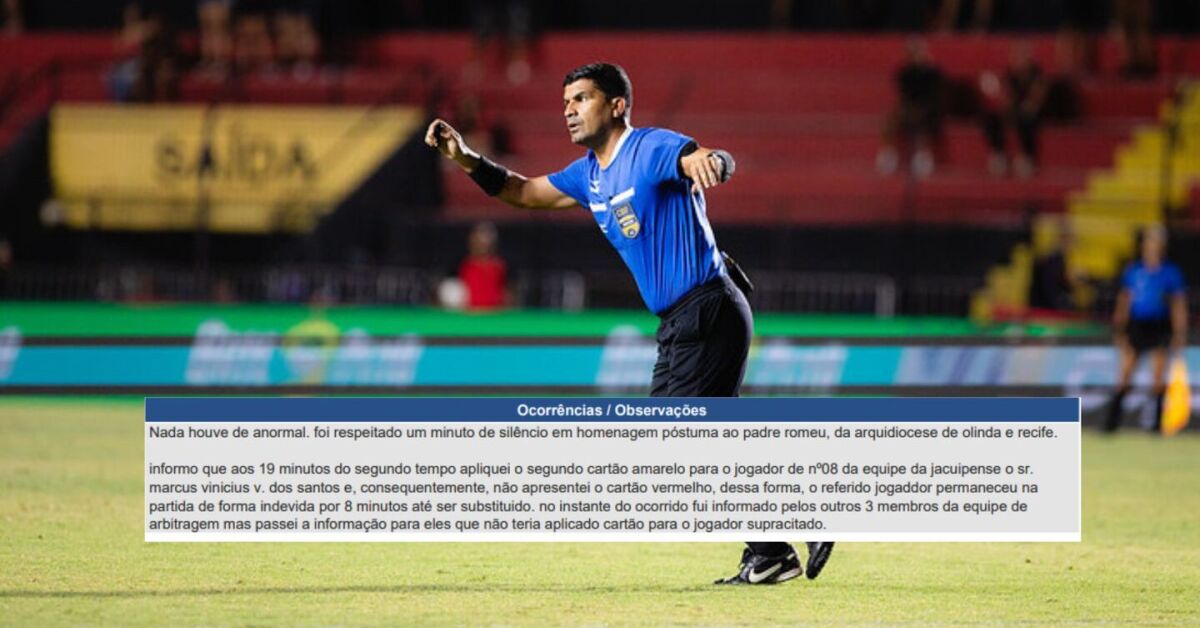 A situação ganhou novos contornos com o registro oficial da partida. Na súmula, o árbitro reconheceu o erro. Ele afirmou que aplicou o segundo cartão amarelo ao jogador do Jacuipense aos 19 minutos do segundo tempo, mas não apresentou o cartão vermelho, o que permitiu a permanência indevida do atleta em campo.
