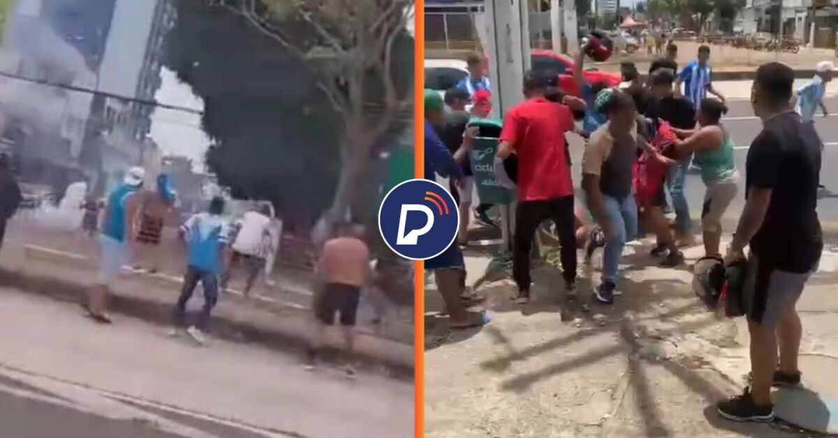 Uniformizadas do SPORT, PAYSANDU e REMO brigam nas ruas de Belém, antes de jogo da Série B, em Belém Foto: Reprodução / Redes Sociais