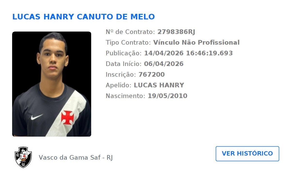 O jogador já teve sua documentação regularizada e está inscrito para as competições oficiais da temporada. A chegada de Lucas Hanry encorpa o elenco da "Base Forte" e reforça a estratégia do Vasco em captar os melhores talentos do mercado nordestino para lapidação em São Januário.