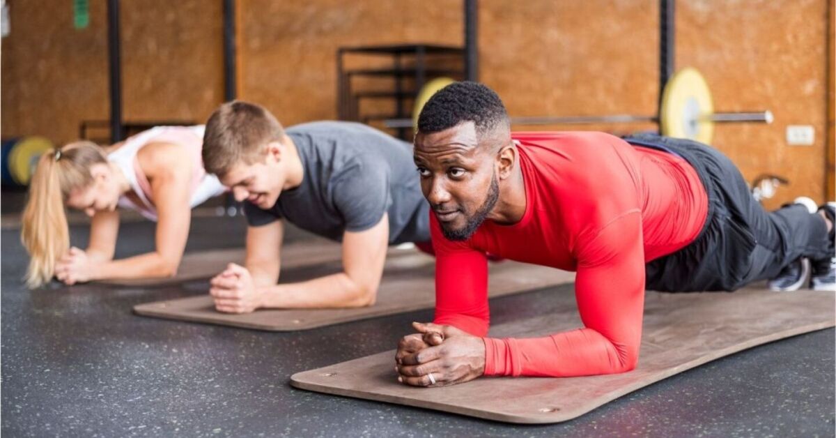 Pessoas em academia fazendo exercício de prancha. Foto: Reprodução