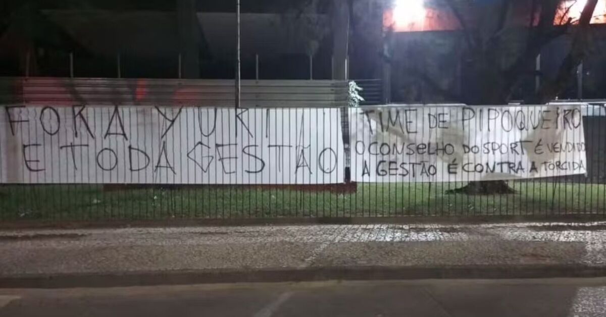 A madrugada desta terça-feira, 21 de outubro, começou com um clima de forte insatisfação entre torcedores do Sport. Faixas de protesto foram espalhadas nas imediações da Ilha do Retiro, em Recife, com críticas diretas ao presidente Yuri Romão, ao elenco e ao Conselho Deliberativo do clube.