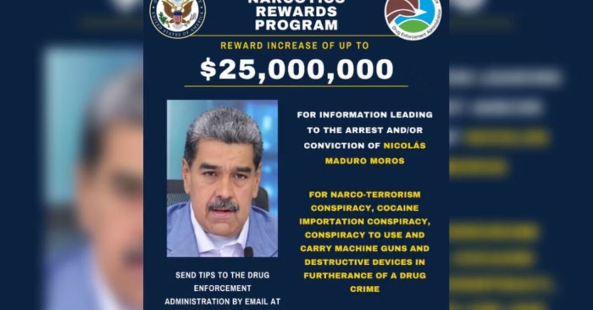 O governo dos Estados Unidos (EUA) anunciou nesta sexta-feira, 10 de janeiro, uma recompensa de US$ 25 milhões (aproximadamente R$ 150 milhões) por informações que resultem na prisão do presidente da Venezuela, Nicolás Maduro.