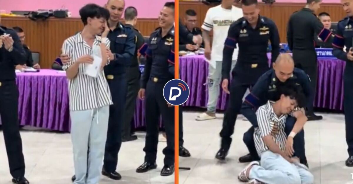 Um jovem tailandês desmaiou ao ser sorteado para servir ao exército durante o processo anual de alistamento militar obrigatório na Tailândia.