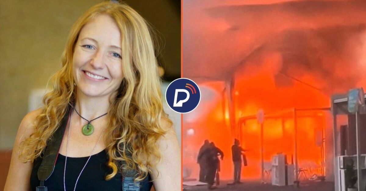 Kiara Worth e sua foto do incêndio na COP 30 em Belém do Pará. Foto: Reprodução Facebook pessoal de Kiara Worth e incêndio Kiara Worth. Montagem: Bruno Vila Nova