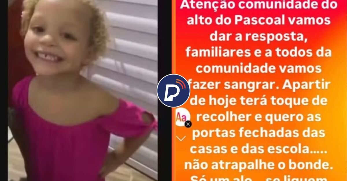 Após a morte da vítima, diversos moradores da comunidade do Alto do Pascoal começaram a receber, por meio de grupos de WhatsApp e Telegram, uma mensagem informando que todos devem manter as portas fechadas e que vai ter toque de recolher para "não atrapalhar o bonde", que quer vingar a morte da garota.