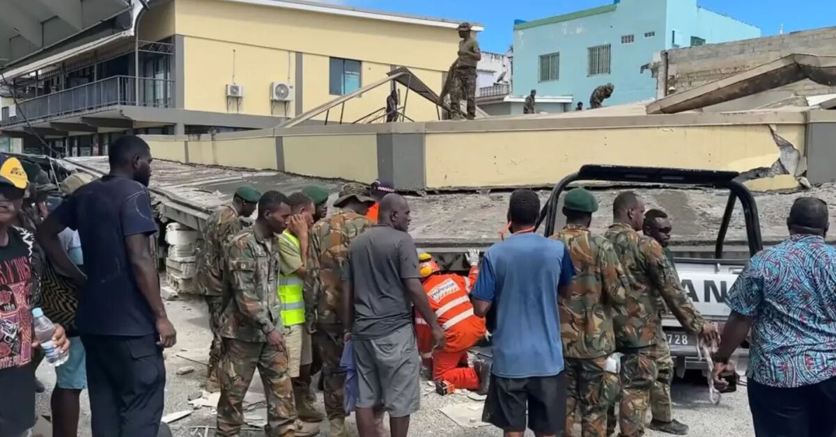 A emissora estadual de Vanuatu, VBTC, mostrou imagens dos danos a carros e construções e relatou que uma pessoa ficou presa em um prédio desabado.