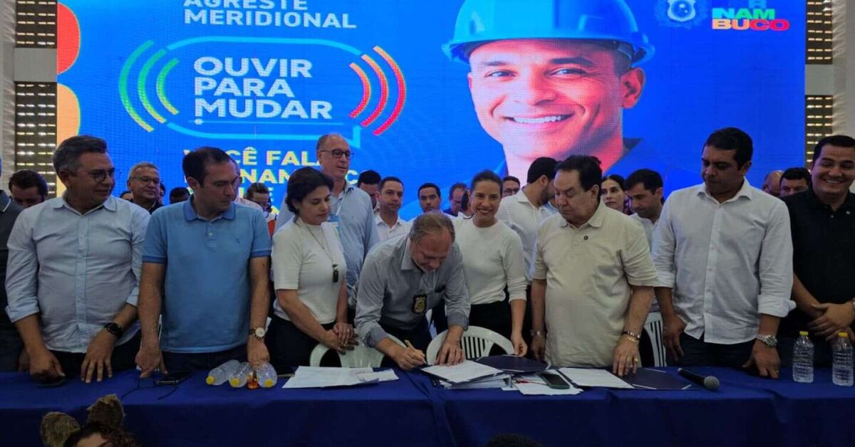 A governadora Raquel Lyra assinou, durante o evento do Ouvir para Mudar, nesta sexta-feira, 22 de agosto, em Garanhuns, a ordem de licitação para construção da Delegacia de Venturosa, no valor de R$ 1.635.116,47, e da Delegacia de Calçado, no valor de R$ 1.627.212,68, totalizando R$ 3.262.329,15 de investimentos em segurança pública no Agreste Meridional.
