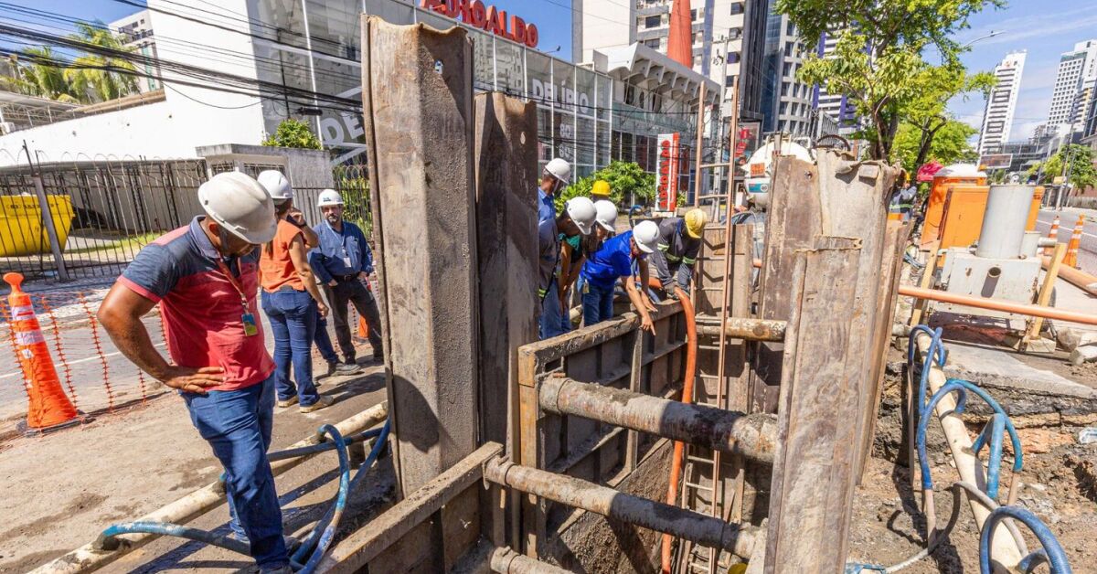 As atividades estão sendo executadas pela BRK, parceira da Compesa no Programa Cidade Saneada, e acontecem no canteiro central da avenida. Serão trocados 6 metros de uma tubulação que se encontra danificada, com aproximadamente 3 metros de profundidade.