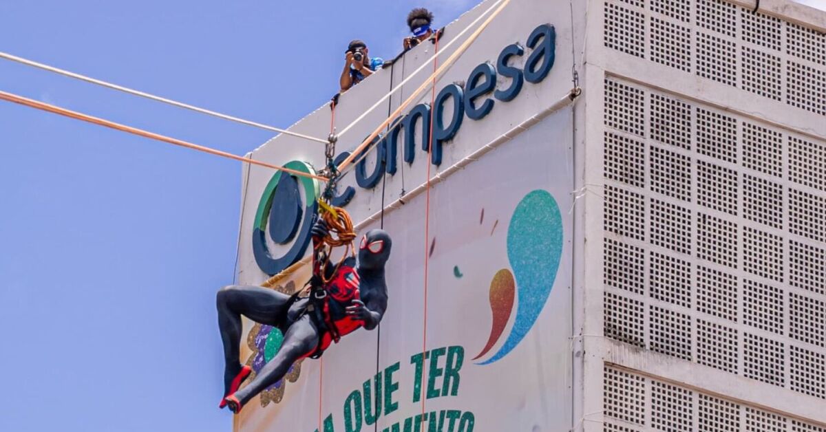 “É uma adrenalina correndo nas veias muito grande, muito intensa. E ainda mais o calor, não digo nem o calor mesmo do sol, mas o calor do nosso frevo, que é muito bom, muito gostoso. E dá aquela adrenalina, aquele sangue quente, cara, correndo. Ainda mais uma aventura vertical. Mas a equipe é preparada, a gente está bem equipado, bem preparado para fazer essa performance”, disse o Homem-Aranha.