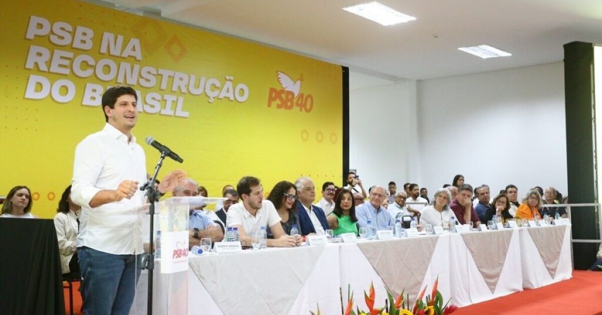 João Campos discursando em reunião partidária do PSB. Foto: Divulgação