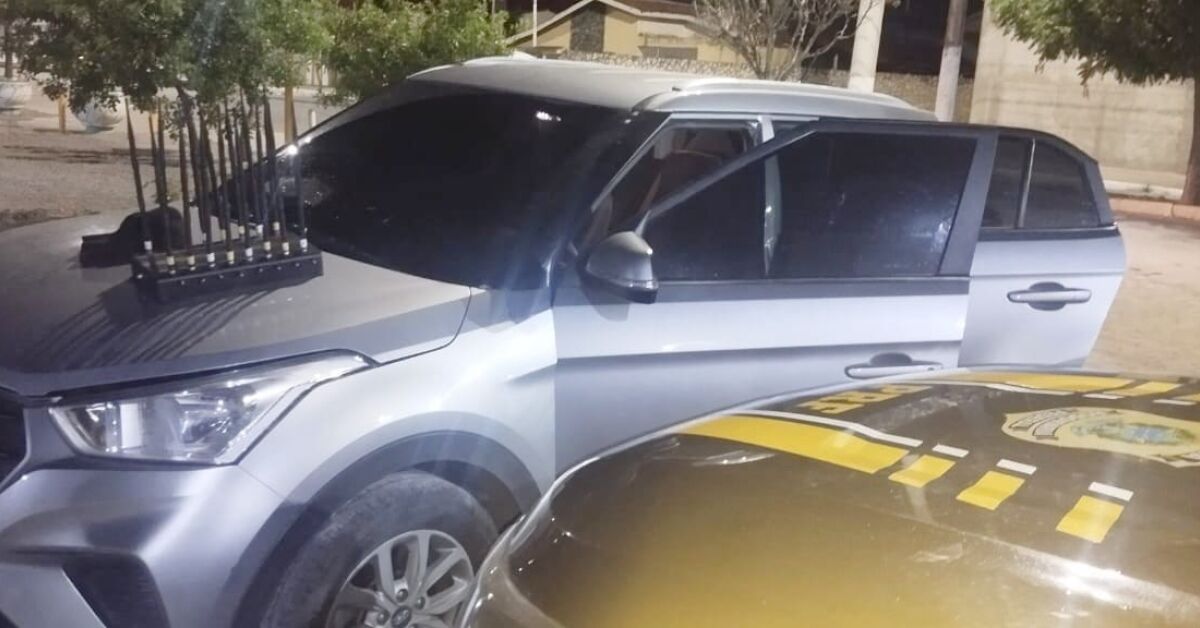 Policiais do Grupo de Patrulhamento Tático (GPT) realizavam uma fiscalização próximo de uma fila de veículos, quando avistaram o motorista de um carro acessando o acostamento para tentar fugir do local. Durante a abordagem, a equipe percebeu que os ocupantes estavam nervosos e entraram em contradição sobre o motivo da viagem.