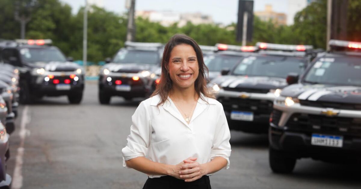 Governadora Raquel Lyra e viaturas da polícia Foto: Hesíodo Góes/Secom