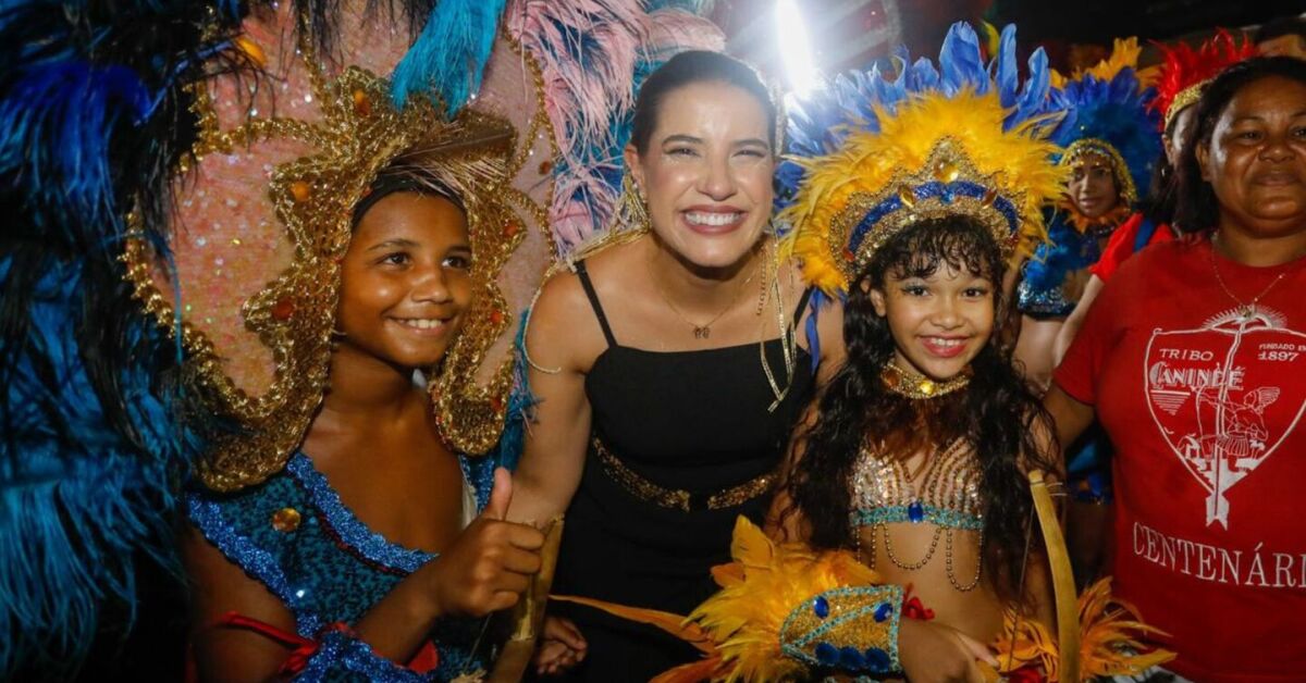Raquel Lyra com crianças no Carnaval Foto: Miva Filho/Secom