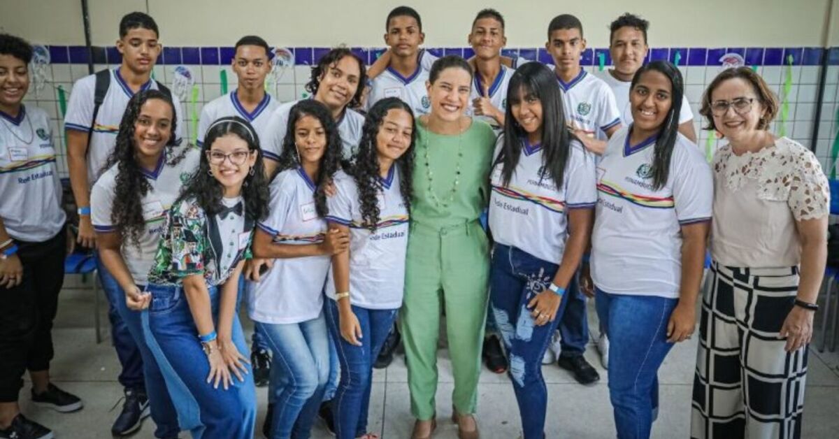 Raquel Lyra com estudantes. Foto: Divulgação/Secom
