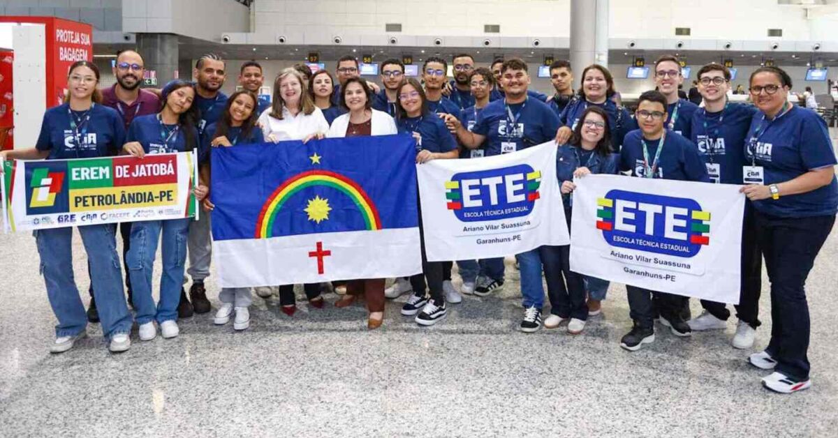 O embarque, realizado no Aeroporto Internacional do Recife/Guararapes – Gilberto Freyre, reuniu estudantes, professores e gestores das Escolas Técnicas Estaduais (ETEs) e das Escolas de Referência em Ensino Médio (EREMs).
