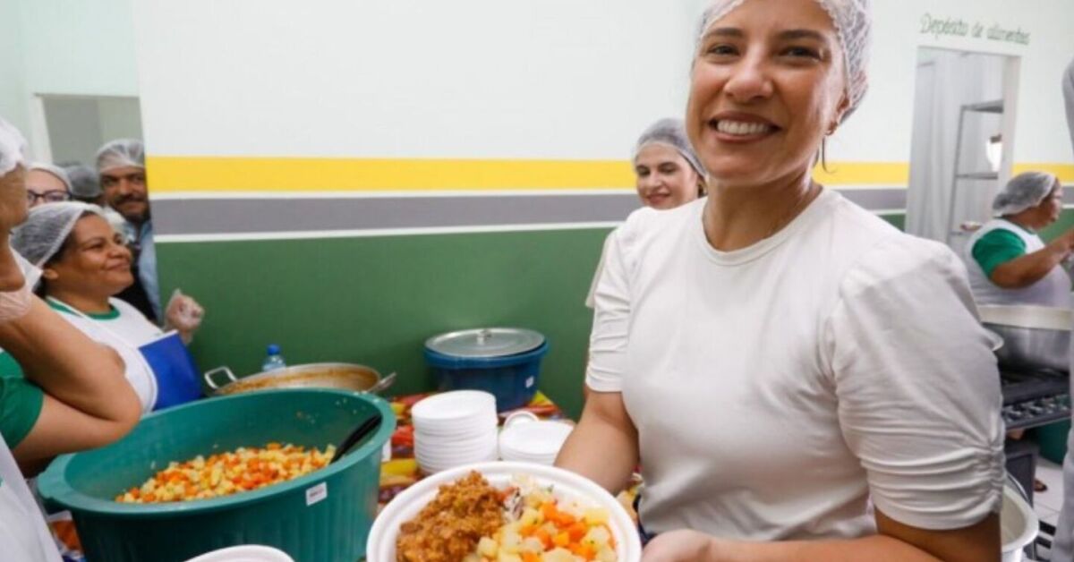 Raquel Lyra em cozinha comunitária. Foto: Reprodução