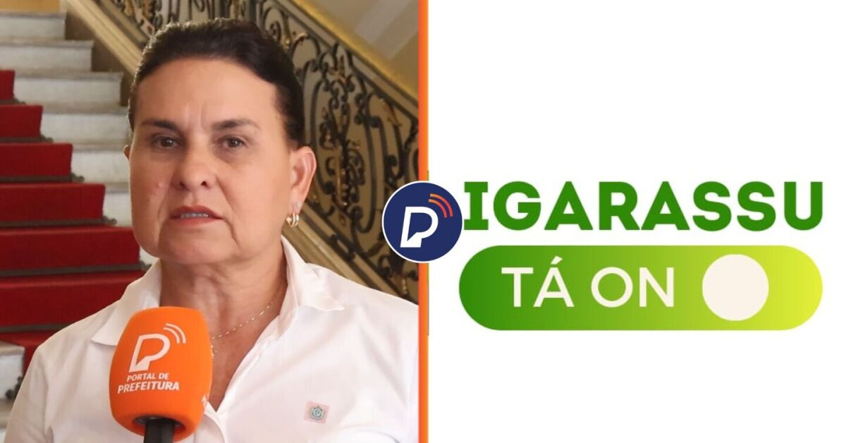 Prefeita Elcione Ramos e logo do Igarassu tá On. Fotos: Beto Dantas/Portal de Prefeitura e Reprodução.