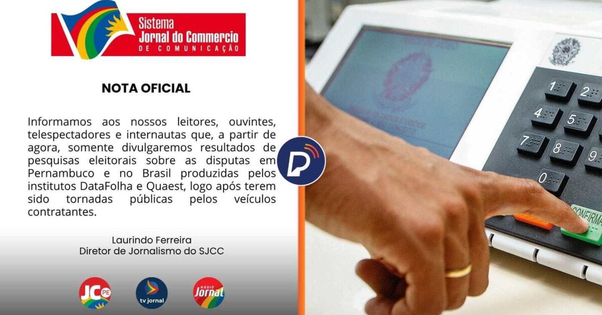 Jornal do Commercio PE anunciou nesta sexta-feira, 10 de abril, que a partir de agora, só irá divulgar pesquisas eleitorais de Pernambuco e Brasil dos institutos DataFolha e Quaest.