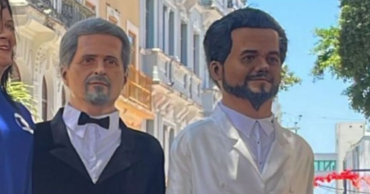 Dos cinemas para as ladeiras de Olinda: Kleber Mendonça Filho e Wagner Moura ganham bonecos gigantes Foto: Reprodução / X