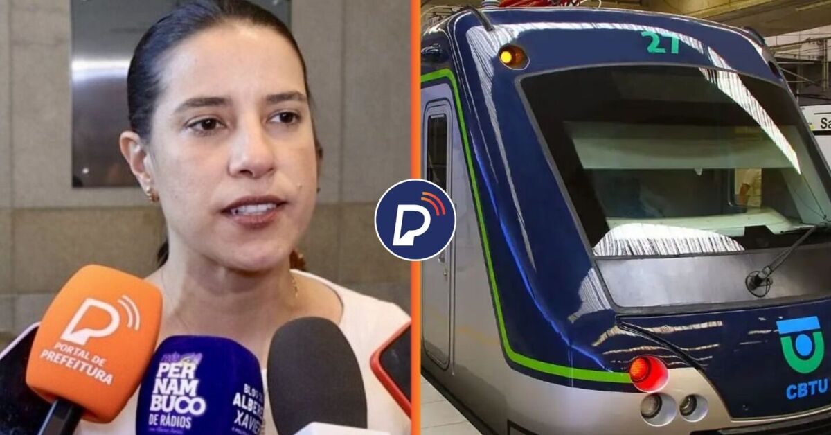 Governadora Raquel Lyr ao lado do metrô do Recife. Foto: Divulgação