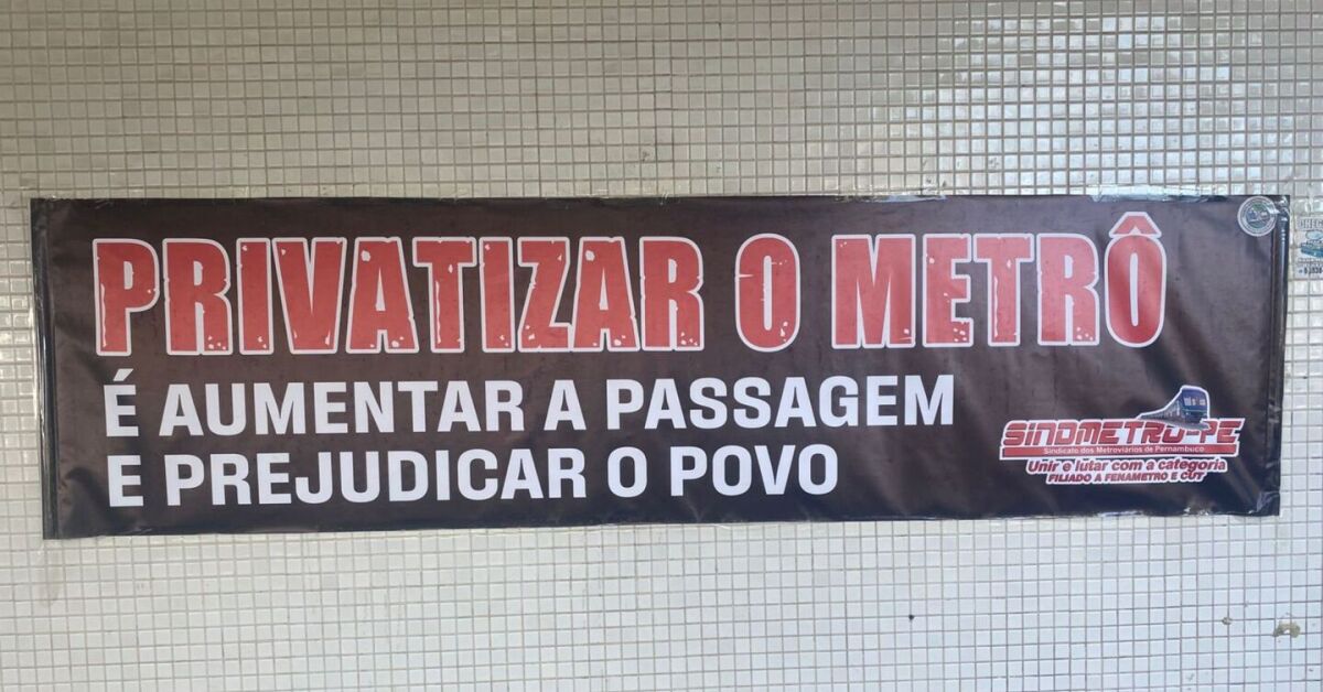 As mobilizações do Sindicato dos Metroviários de Pernambuco (Sindmetro-PE) têm se tornado cada vez mais frequentes. Após realizarem uma paralisação de 24 horas na semana anterior, os trabalhadores voltaram a se manifestar, desta vez com cartazes espalhados em estações com a mensagem: “Privatizar o metrô é aumentar a passagem e prejudicar o povo.”