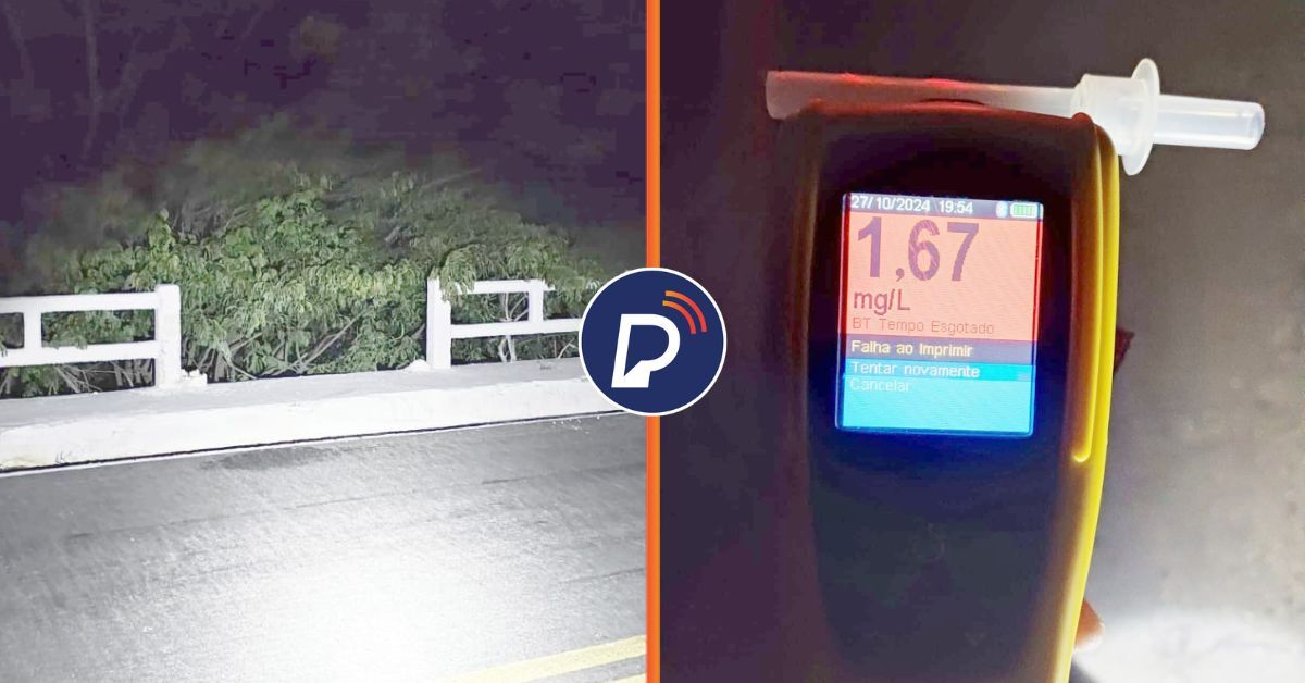 Motorista embriagado com CNH vencida há dois anos é detido após bater em mureta de ponte. Arte montagem: Portal de Prefeitura.
