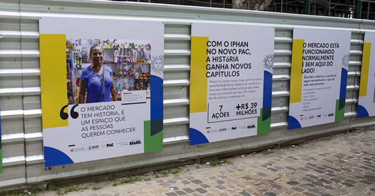 As obras no Mercado de São José vão além da restauração das fachadas históricas, trazendo ações de valorização da memória urbana com tapumes informativos, depoimentos de moradores e pesquisa arqueológica que fortalece o vínculo local com o patrimônio.
