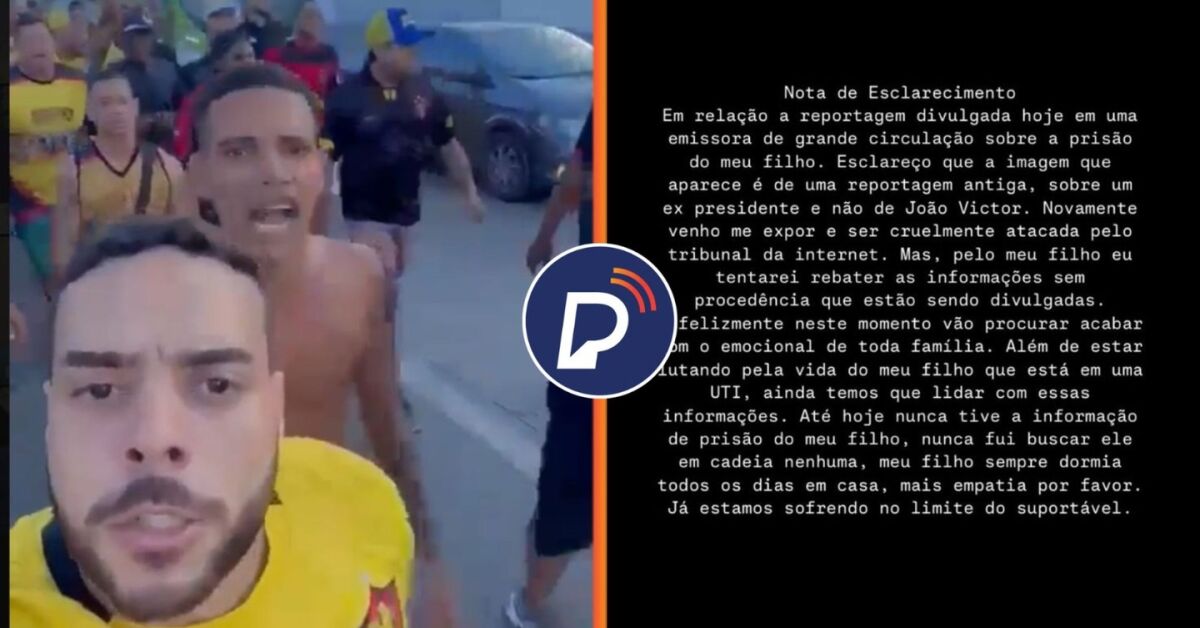 A mãe de João Vitor, presidente da torcida organizada Jovem do Leão, publicou uma nota em suas redes sociais negando uma reportagem divulgada sobre seu filho na manhã desta terça-feira, 4 de fevereiro. Segundo ela, a informação divulgada 'em uma emissora de grande circulação' era falsa e se referia, na verdade, a um ex-presidente da torcida.
