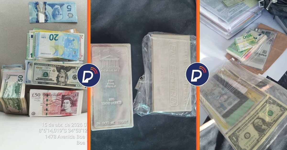 Além dos mandados cumpridos, a operação também resultou na apreensão de bens de alto valor. Entre os materiais recolhidos estão diversas cédulas internacionais, como dólar, florim húngaro e dirham dos Emirados Árabes Unidos e barras de prata.