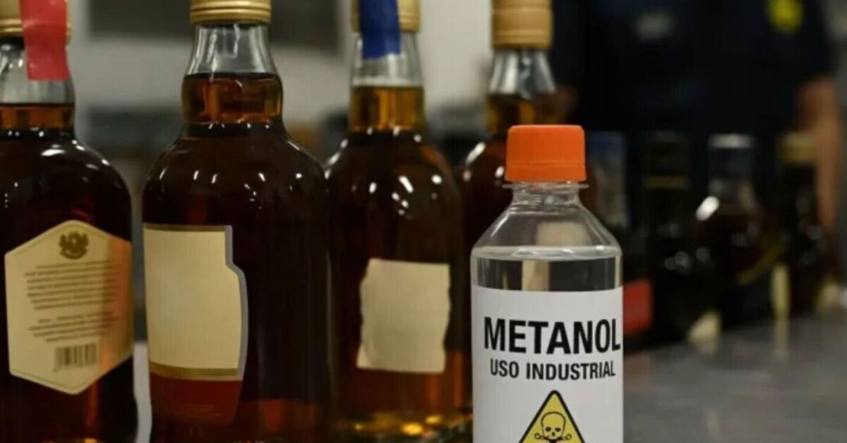 Bebidas e frasco de metanol. Foto: Imagem ilustrativa criada por IA