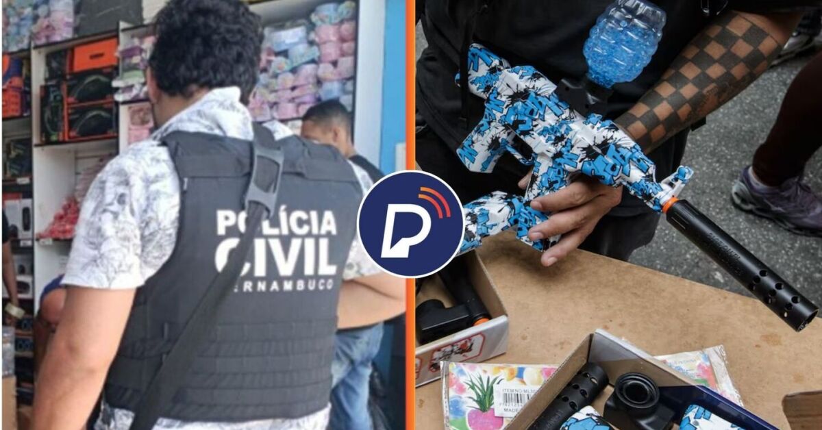 Operação da Polícia Civil apreende 3.510 unidades de armas de gel, em comércios no bairro de São José. Foto: Arte/Portal de Prefeitura