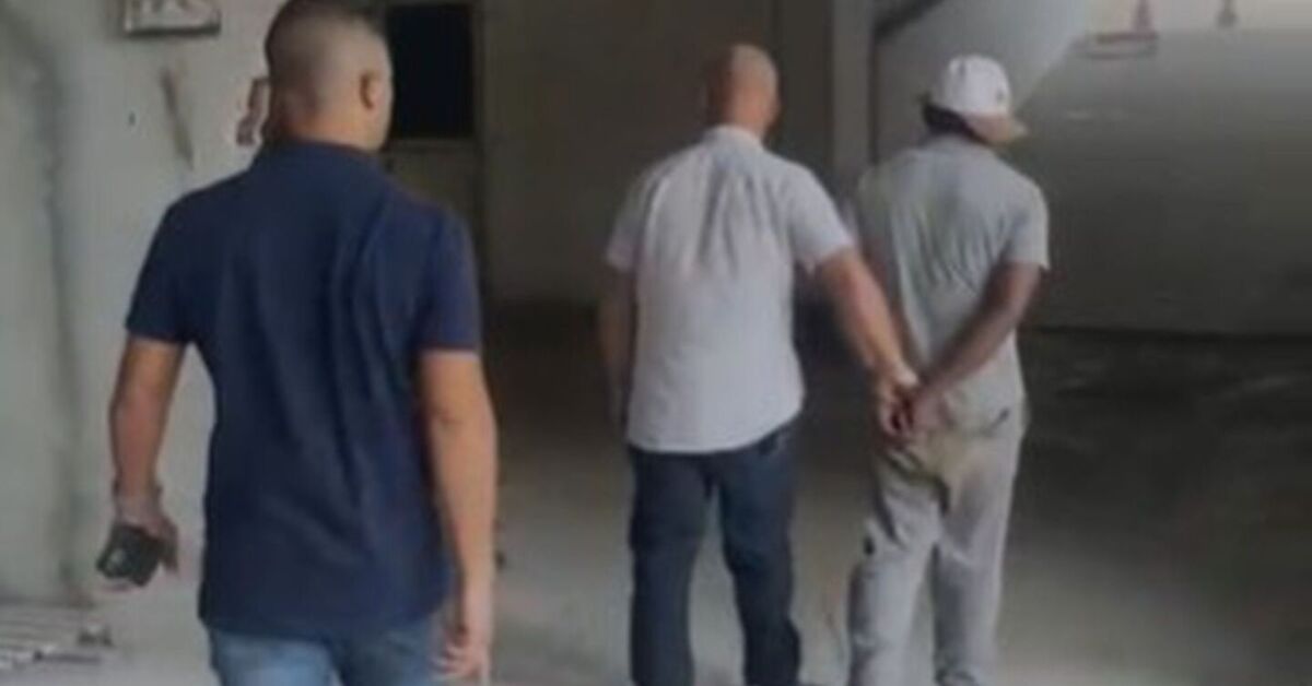 Polícia Civil prendendo o suspeito de roubar os fios. Foto: Divulgação/Polícia Civil de Pernambuco
