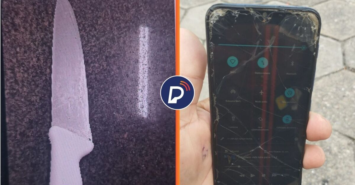 No veículo, encontraram um homem ferido superficialmente por facada e as pessoas deram as características dos agressores, que logo foram encontrados e presos, ainda com a faca usada no crime e o telefone. Eles foram identificados por testemunhas e apresentados à Polícia Civil, para a tomada das providências cabíveis.