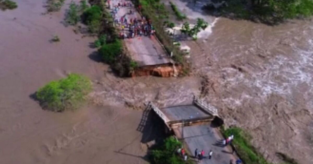 Ponte desaba em Calçado e tráfego para outras regiões fica impossibilitado após muita chuva Foto: Reprodução / Instagram / @blogcarloseugenio