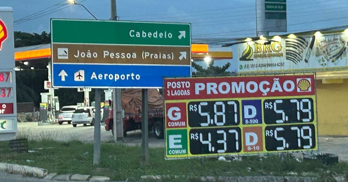 Registros feitos em postos às margens de rodovias e em áreas urbanas mostram a gasolina comum sendo vendida na Paraíba por valores na faixa de R$ 5,80 a R$ 5,90, enquanto na capital pernambucana os preços superam os R$ 6,70 em diversos estabelecimentos.
