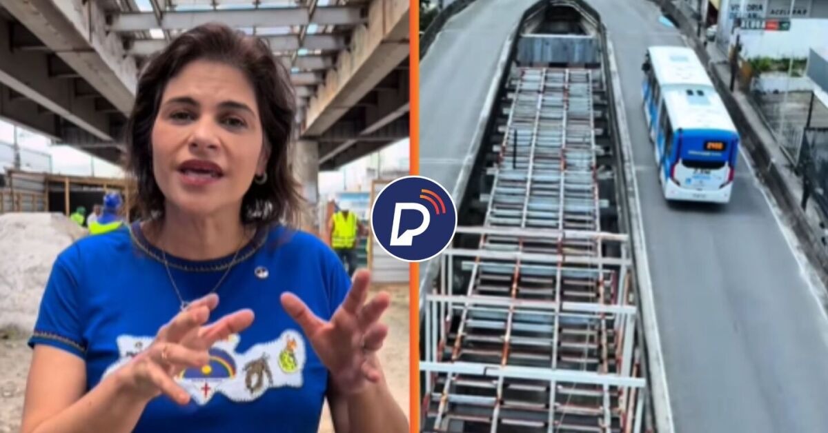 “E isso aqui que virou uma piada de mau gosto era pra ter ficado pronto em dois mil e quatorze pra copa do mundo. Esse ano a gente vai ter a terceira copa, mas agora a governadora Raquel Lyra decidiu que esse tempo passou. A gente está fazendo a estação BRT retomando essa obra atualizando o projeto”, afirmou Priscila Krause.