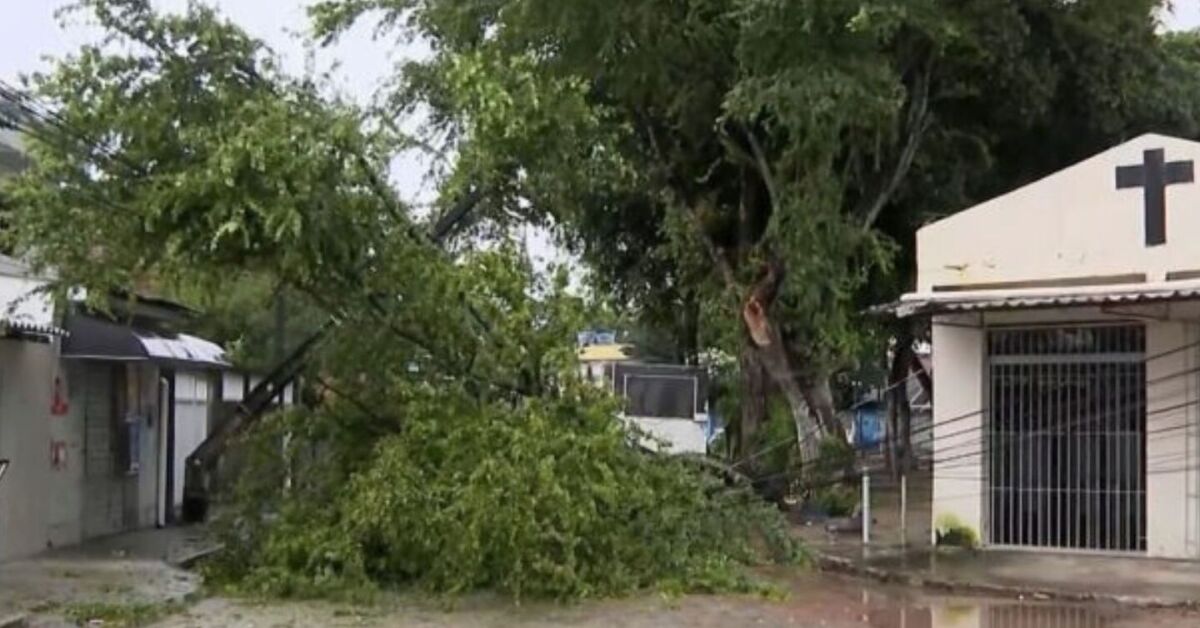 Queda de árvore deixa moradores sem energia em Areias após fortes chuvas no Recife Foto: Reprodução / TV Globo