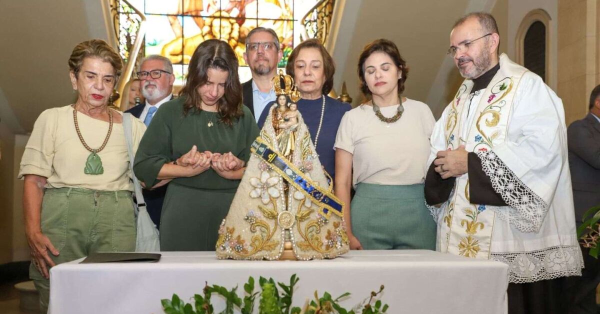 Símbolo do Círio de Nazaré, a imagem de Nossa Senhora de Nazaré foi recebida por Raquel Lyra nesta terça-feira (1º), no Palácio do Campo das Princesas.