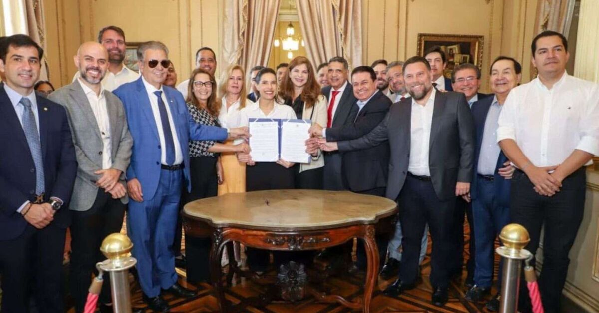 Raquel Lyra ao lado de deputados estaduais. Foto: Yacy Ribeiro/Secom