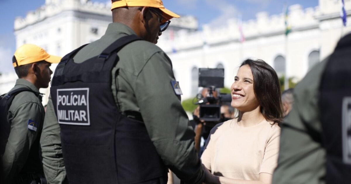 Governadora Raquel Lyra ao lado de policial militar. (Foto: Hesíodo Góes)