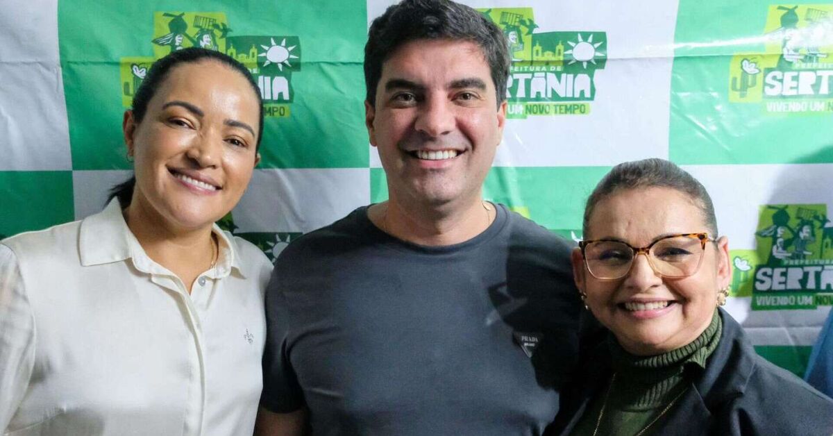 Kaio Maniçoba ao lado da prefeita e vice de Sertânia, Pollyanna Abreu e Teresa de Sinval. Foto: Arthur Marrocos