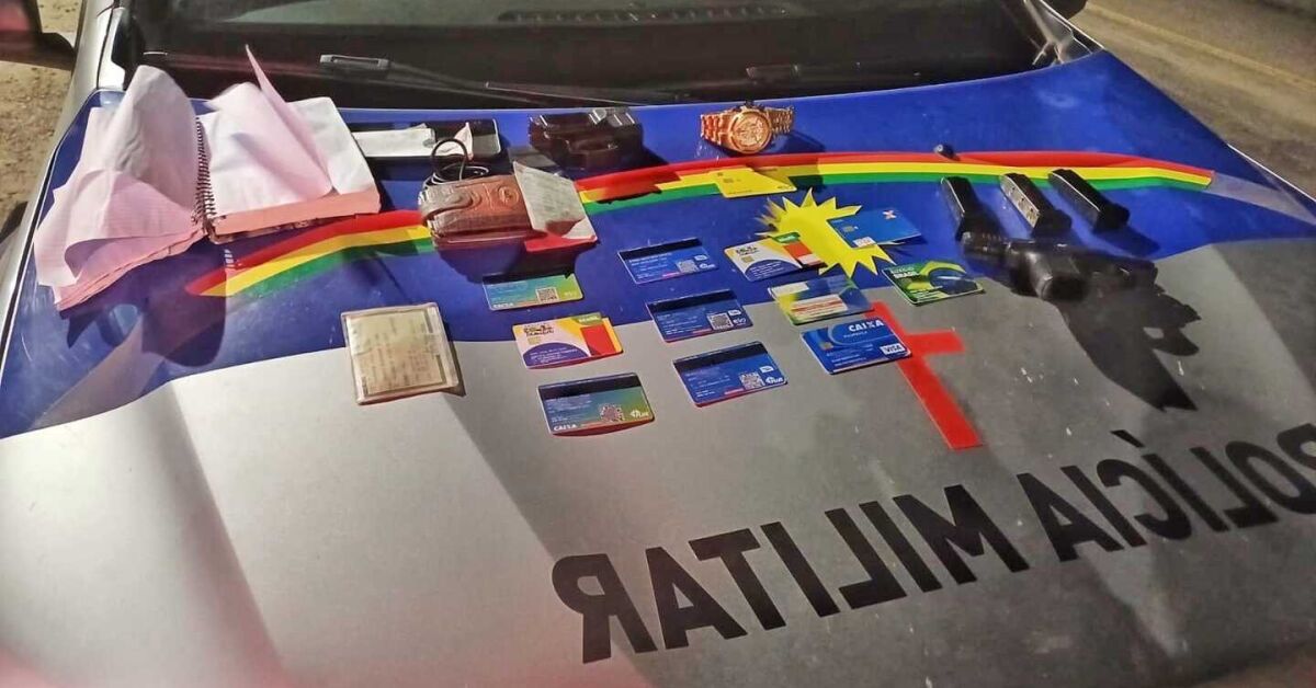 Dentro do carro foram encontrados cerca de 12 cartões de crédito, em branco e em nome de outras pessoas, além de uma pistola calibre 380, com três carregadores e 39 munições. O homem que estava de tornozeleira alegou que a arma era dele.