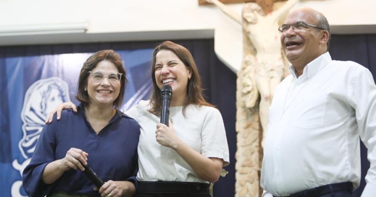 Encontro entre o fundador da Obra de Maria, Gilberto Barbosa, e da governadora de Pernambuco, Raquel Lyra e Priscila Krause Foto: Hesíodo Góes/Secom