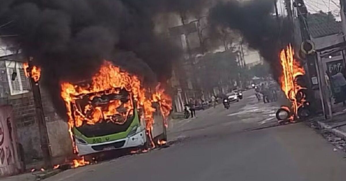Ônibus incendiado no bairro de Sítio Novo, em Olinda. Foto: Reprodução/ g1 pe