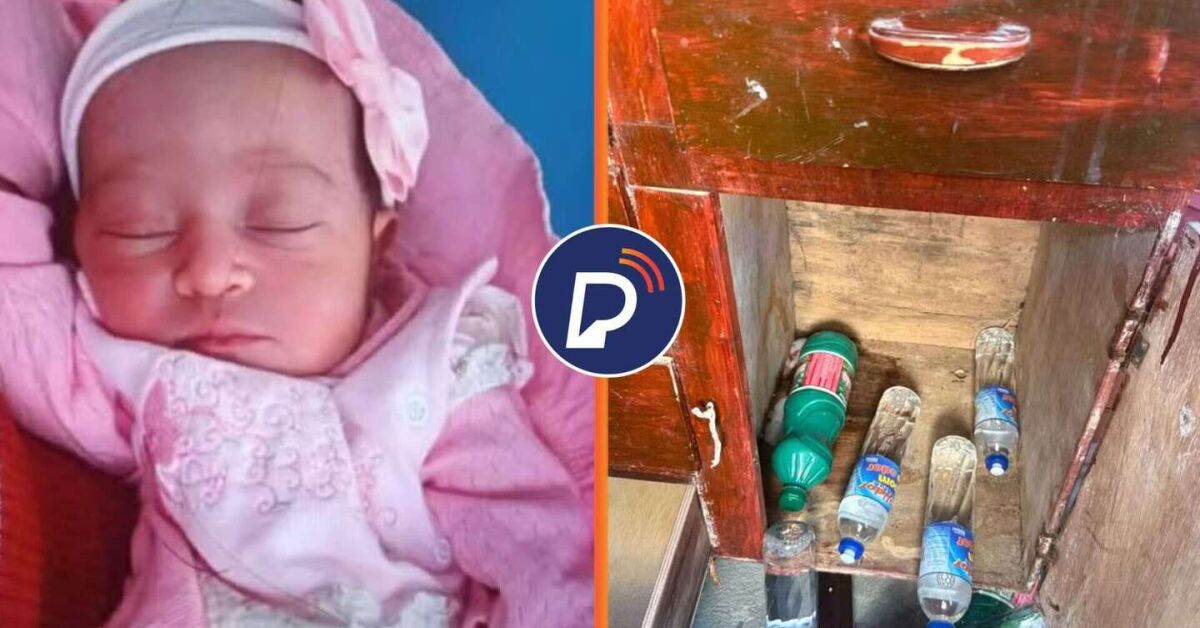 O corpo da bebê foi encontrado pela polícia enrolado em um saco plástico, dentro de um armário onde também estavam guardados materiais de limpeza.