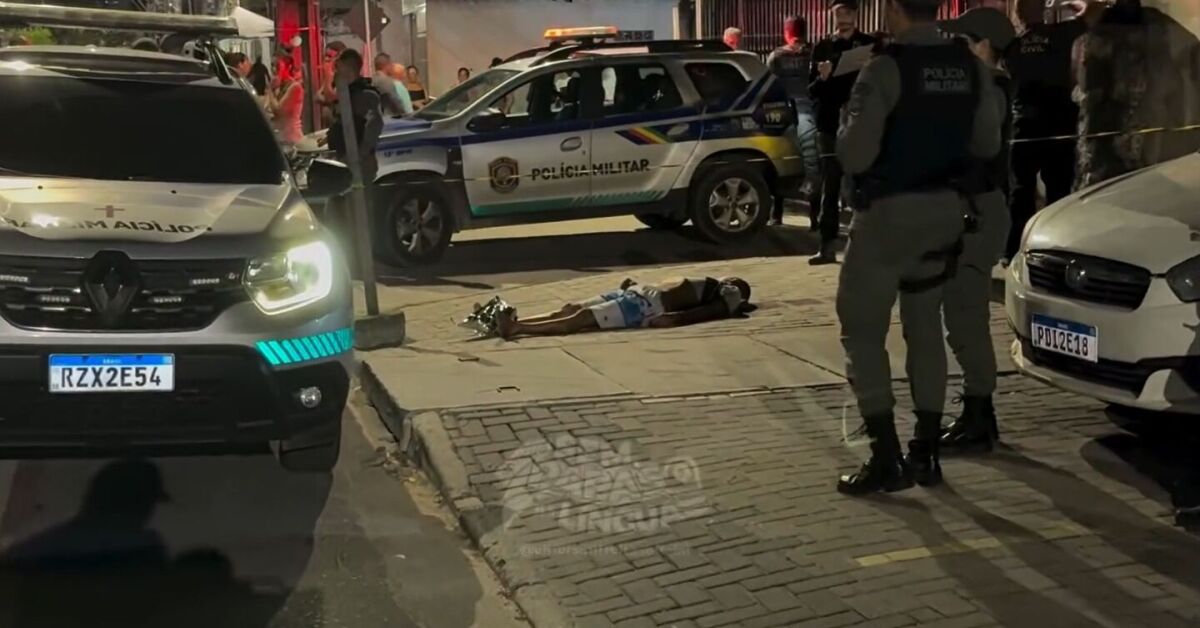 Corpo de homem morto a tiros é jogado na frente da delegacia central de plantões da polícia Foto: Reprodução/Redes Sociais